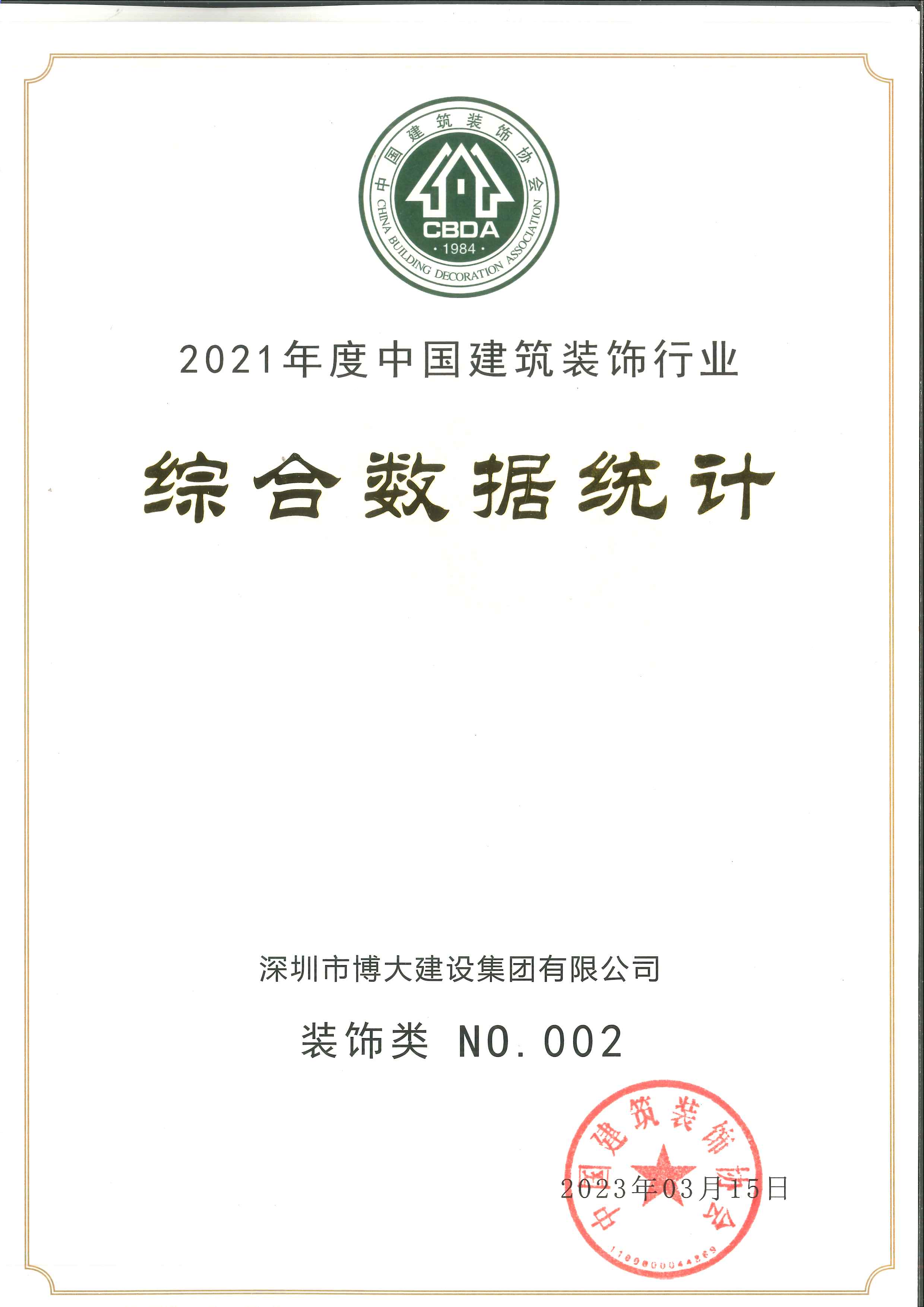 2021年度中國建筑裝飾行業(yè)百強(qiáng)裝飾類第二名